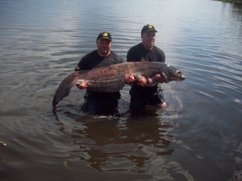 Eddy Nowack et Nicolas Birembaut. Record 2014, silure de 1,90 m, poids 45 kg.